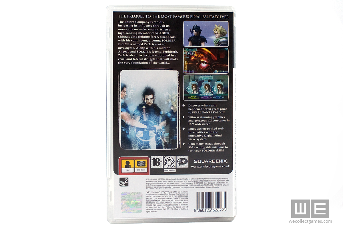 Európában nagyon kevés gyűjtői kiadású PSP játék jelenik meg, még ritkábbak az olyan esetek, amikor valamilyen kézzel fogható extra is jár a csomaghoz. A Crisis Core: Final Fantasy VII Special Edition egy különleges csomagolású változat, amelyhez egy artbook, valamint egy egyszerű kiadású játék tartozik.