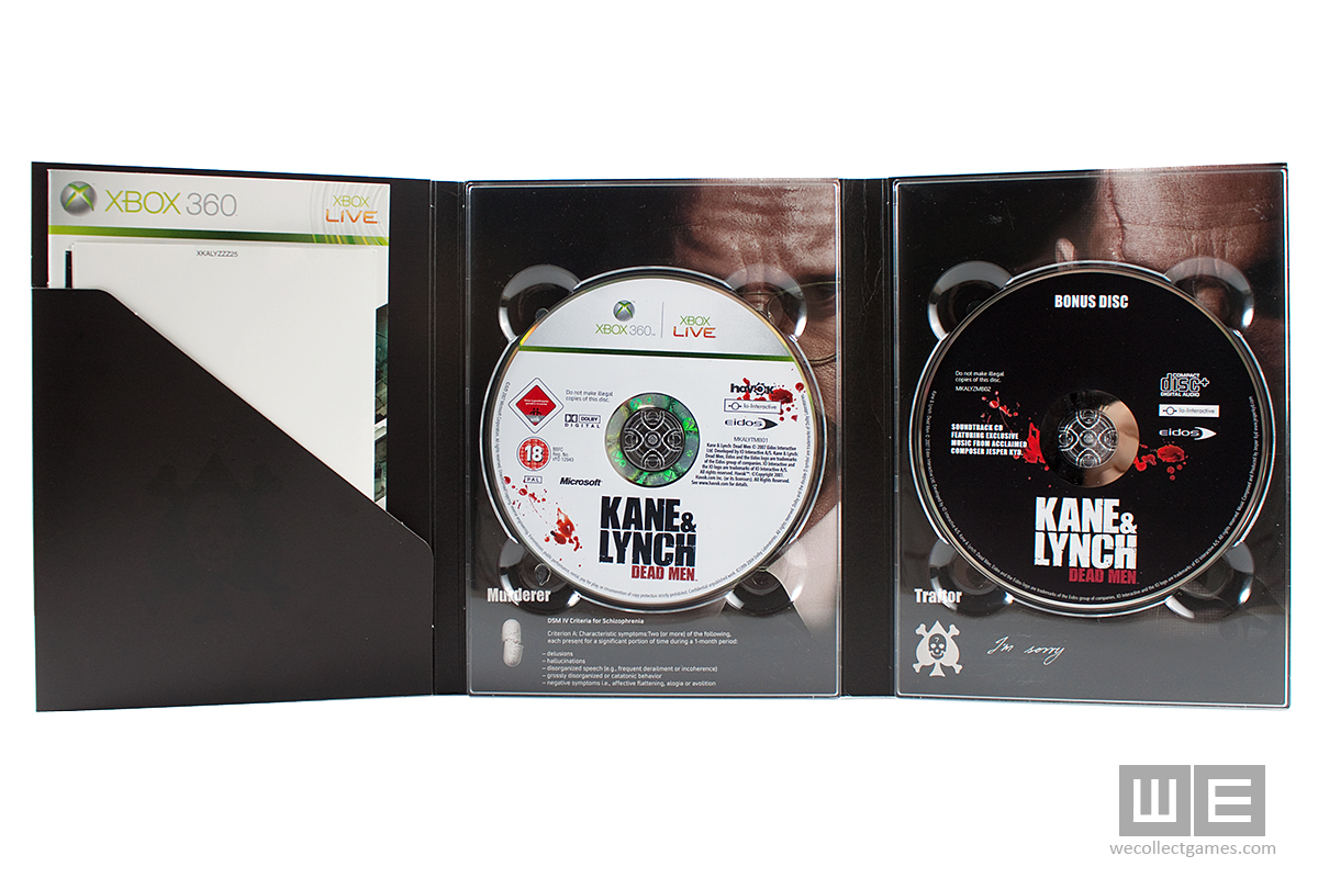A Kane & Lynch: Dead Men Limited Edition csomag tartalma: különleges csomagolás, játéklemez, Soundtrack CD, 4 darab art kártya.